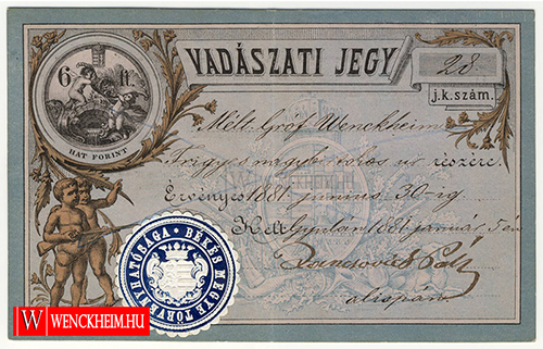 A következő információkat a vadászati jeggyel kapcsolatban Gyevnár Erika ismerősöm kutatta fel a wenckheim.hu számára. Köszönöm a megtisztelő segítségét. (2015. október 16.)
