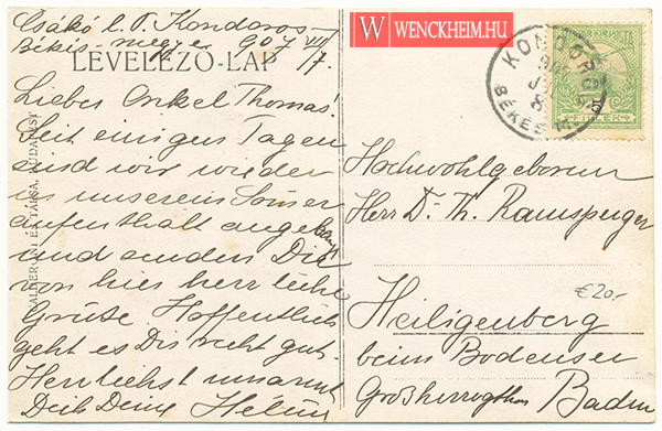 Egy újabb különleges képeslappal bővült 2015-ben a wenckheim.hu.