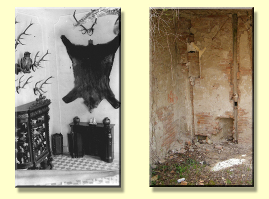 Két helyiség csaposgerenda födémét megbontották és teljesen hiányzik. Az emeleten 12 lakóhelyiség, WC és fürdőszoba van, továbbá a közlekedés lebonyolítására közlekedő folyosó és egy felső világítású hall. A lakóhelyiségek itt is tapétázva voltak, azonban ez is le van szaggatva. Az asztalosmunka legelsőrendű kivitelben, hófehér mázolással készült. Azonban az összes ajtó és ablakszárny, az ablakok bélés és mellvédborítása és több helyen az ajtók tokrészei is hiányzanak. Az összes lakóhelyiség parketta és vakpadló burkolata, párnafák a közlekedő helyiségek lapburkolata, konyha csempéje teljesen hiányzik. A reprezentációs helyiségek fűtését márványkandallókon kívül az alagsori helyiségben elhelyezett kaloriféresek által termelt és falicsatornákon vezetett légfűtés látta el. Az összes alagsori, földszinti és emeleti lakóhelyiségeket pedig cserépkályhákkal fűtötték. Azonban az összes kaloriféres és megállapíthatóan nagyértékű külföldi gyártmányú cserépkályhák teljesen össze vannak törve. A világítást a főépület közelében lévő gépház és szivattyúház gépiberendezésével előállított áram szolgáltatta, a gépiberendezéssel együtt a falakban elhelyezett szigetelőcsövek és huzalok is hiányoznak. A vizet a szivattyú által táplált kb. 3x3m űrtartalmú és az emelet felett levő padlástérben elhelyezett tartály szolgáltatta. A tartály kivételével az összes berendezési tárgy és sok helyen a csőhálózat is hiányzik." A főbejáraton belépve egy haránttengelyes előcsarnokba juthattunk. Itt kétoldalt egy-egy kis íves lépcsőkar vezetett a piano nobile megemelt járószintjére. A falakat trófeák és agancsok tucatjai díszítették. Az előcsarnokhoz balról kapcsolódott a főlépcsőház, szemben három boltíves nyílás az épület közepét elfoglaló hallba - nagyszalonba - vezetett. Faragott vörösmárvány kandallója a déli oldalfal szimmetriatengelyében foglalt helyet, a falakat rózsaszín tapéta borította, melyen "Ilus néni" (Széchenyi Ilona grófnő) festményei függtek. Észak felé nyílt a faburkolattal kialakított tágas ebédlő, nyugati falában kandallóval. A nagyszalontól délre Wenckheim Krisztina és Széchenyi Antal nappali szobái és a kertre tájolva közös hálószobájuk feküdt. Az idős gróf halála, 1924 után mind a négy szobát csak az özvegy grófnő használta. Az udvari oldalon volt a rádió-szoba, a grófnő kisszalonja. Mögötte a zöld színű kárpittal és faburkolattal kialakított férfi kisszalon volt a pipázó. Mellettük, a kerti oldalon a dolgozószoba nyílt, mögötte eredeti helyén maradt a tulajdonosi hálószoba. A déli szárnyban a két leány (Antoinette és Ilona) valamint a két fiúgyermek (gróf Széchenyi Ferenc és Károly) nappali és hálószobái voltak, az emeletet, pedig a vendégszobák foglalták el. Az 1952 körüli időkből maradt fenn további két fényképfelvétel, mely a kastély további - megállíthatatlan - pusztulását mutatja. A kastély nagy részét 1983-ban egy munkásőrségi gyakorlat keretében felrobbantották!!! ÍRTA: FEKETE J. CSABA építész, egyetemi tanársegéd Budapesti Műszaki és Gazdaságtudományi Egyetem Építészettörténeti és Műemléki Tanszék 1111 Budapest Műegyetem rkp. 3. K II. 60. Tel.: (36-1) 463-1330; Fax.: (36-1) 463-1638