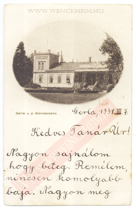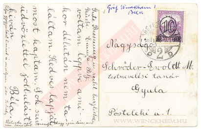 Gróf Wenckheim Béla képeslapja 1931-ből |