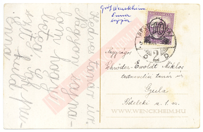 Gróf Wenckheim Mária Enna képeslapjának hátulja 1931-ből